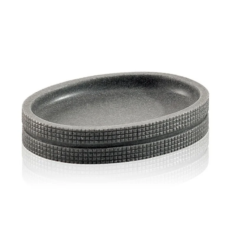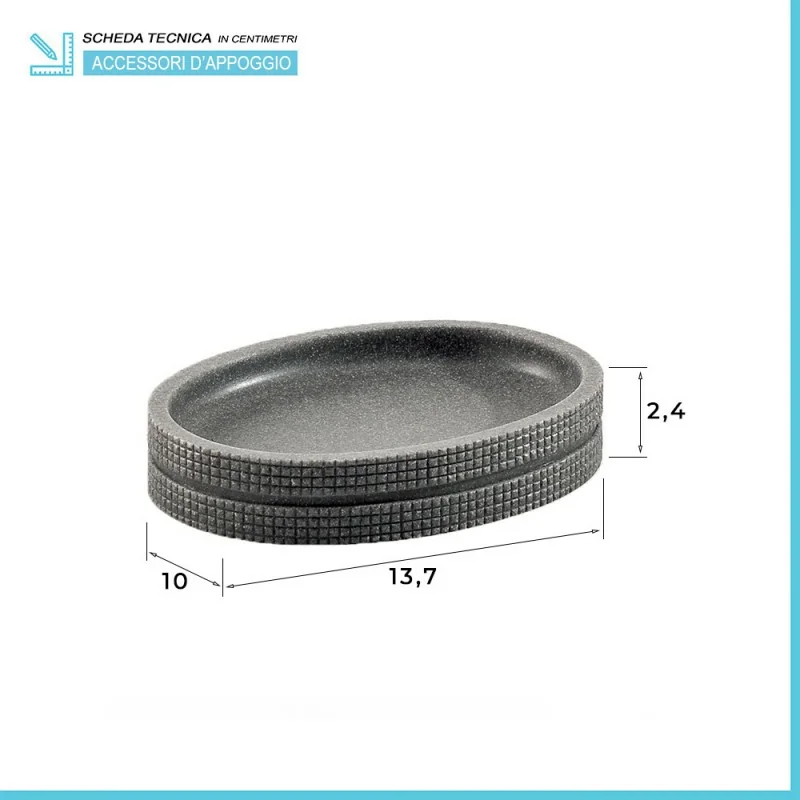 Il piattino portasapone Gedy serie Petra è realizzato in resina di colore grigio,con la sua texture in rilievo arricchirà il tuo arredo bagno con un design elegante e moderno. La gamma di accessori bagno da appoggio Petra può essere completata con tutti gli altri elementi:portaspazzolino,dispenser sapone e portascopino