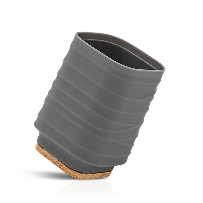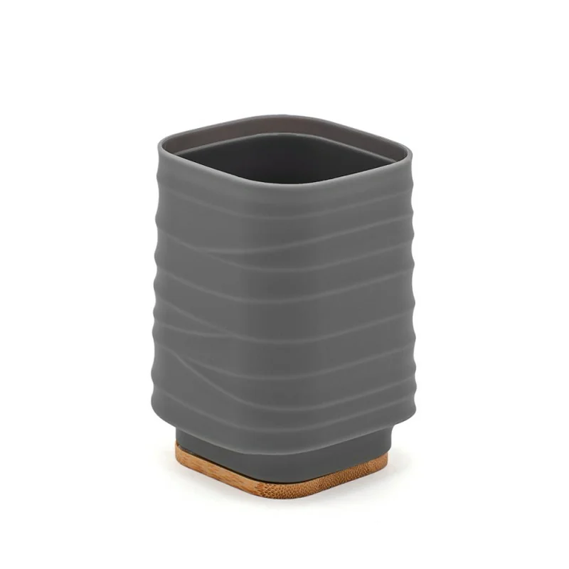 Portaspazzolini da appoggio grigio in abs e bambù Wave
