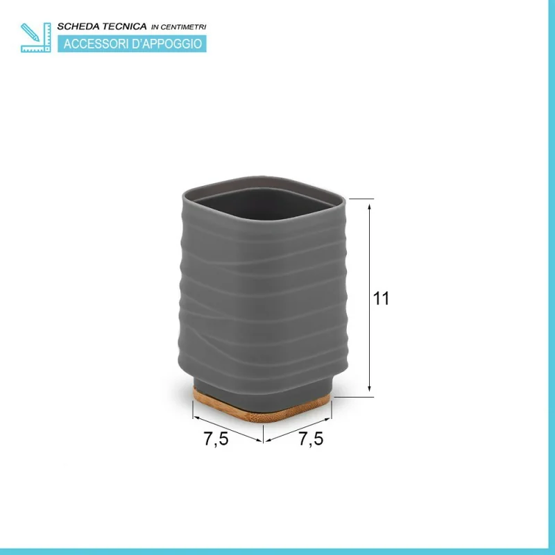 Portaspazzolini bagno – in abs grigio con inserti in bambù naturale