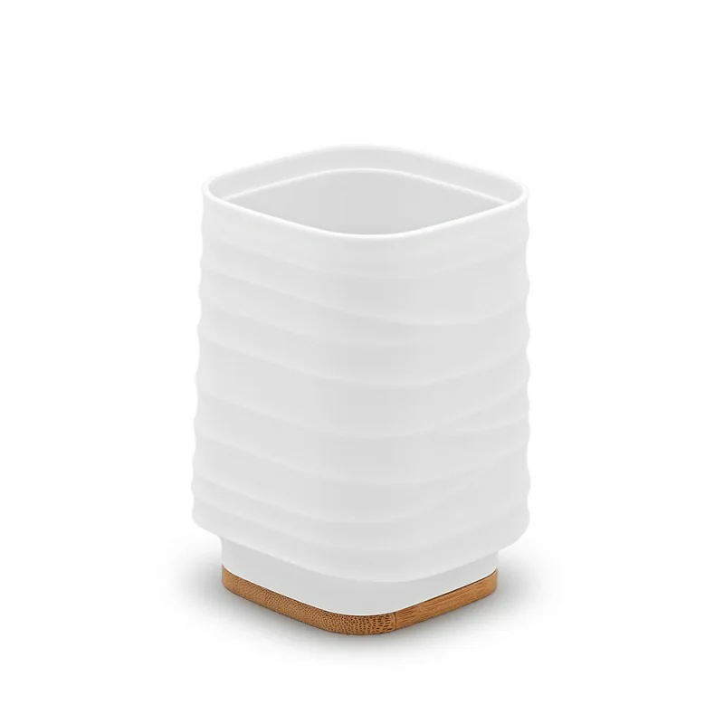 Portaspazzolini da appoggio bianco in abs e bambù Wave