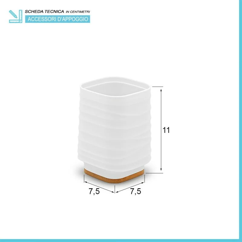 Portaspazzolini bagno – in abs bianco con inserti in bambù naturale