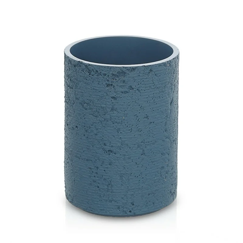 Portaspazzolini bagno da appoggio turchese cobalto in resina effetto pietra Matera