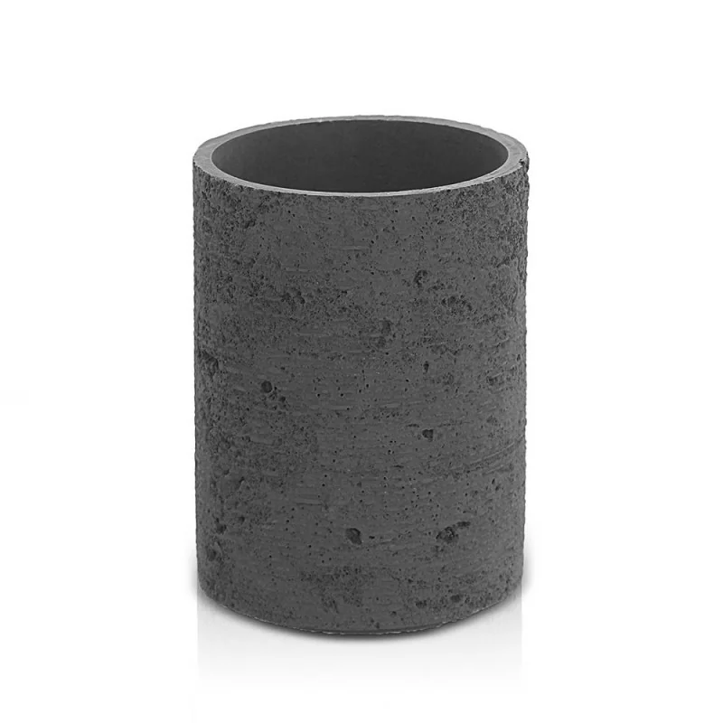 Portaspazzolini bagno da appoggio grigio in resina effetto pietra Matera