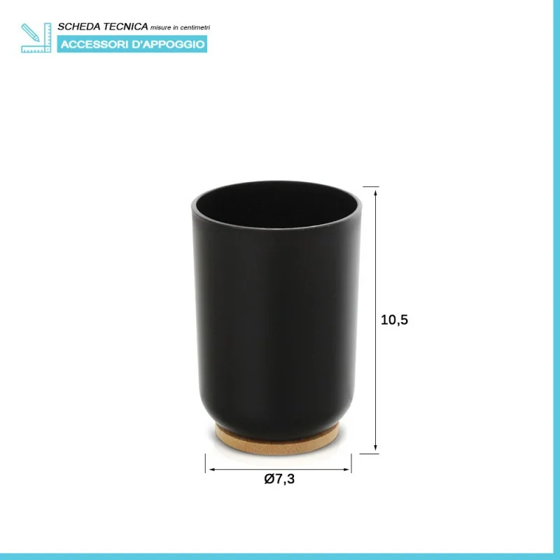 Il porta spazzolini a bicchiere ha la base in legno di bambù naturale,pensata per aderire bene su ogni superfice rendendo questo accessorio antiscivolo. In più,il suo design si adatta alla perfezione ad ogni ambiente:può contenere spazzolini oppure oggetti e pennelli da make-up.