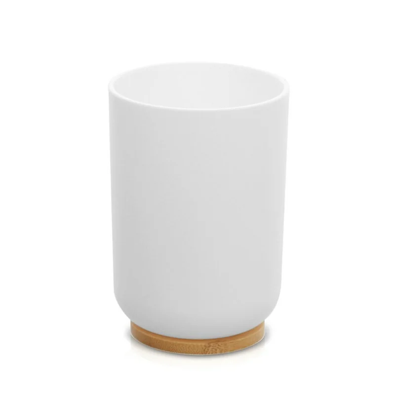 Portaspazzolini bagno da appoggio bianco in abs e bambù Surf