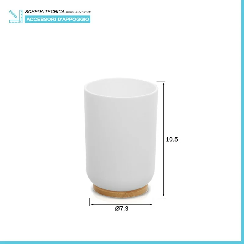 Il porta spazzolini a bicchiere ha la base in legno di bambù naturale,pensata per aderire bene su ogni superfice rendendo questo accessorio antiscivolo. In più,il suo design si adatta alla perfezione ad ogni ambiente:può contenere spazzolini oppure oggetti e pennelli da make-up.
