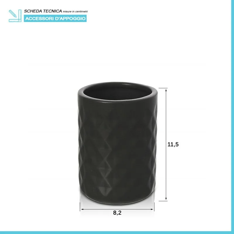Portaspazzolino – linea Cristal in ceramica colore nero per installazione da appoggio