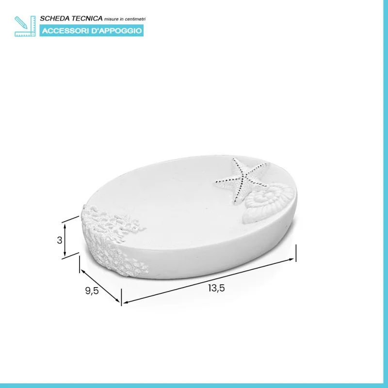 Porta sapone da appoggio in resina bianco con decoro marino | Coral