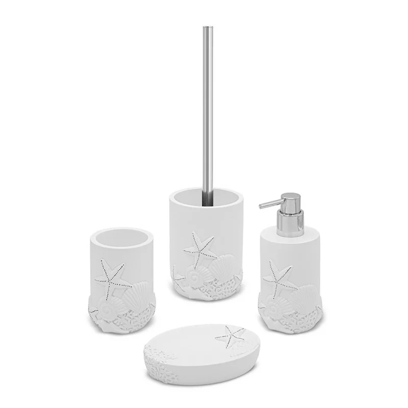 Porta sapone da appoggio in resina bianco con decoro marino  Coral