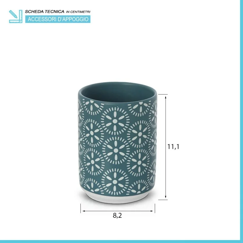 Portaspazzolino da appoggio in ceramica turchese cobalto multiuso Circus