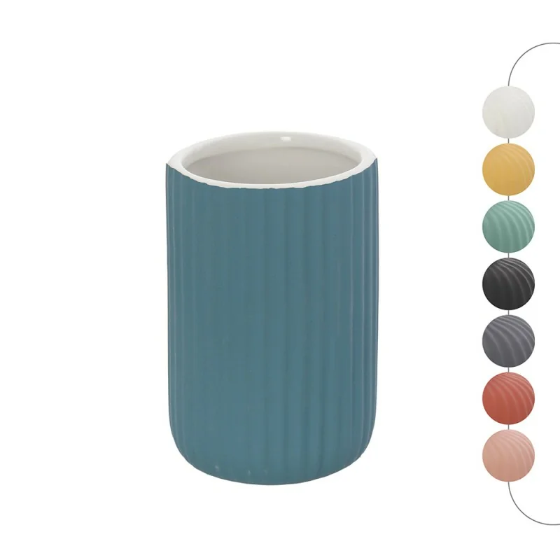Bicchiere multiuso portaspazzolini con superficie cannettata, disponibile in set e in diverse colorazioni