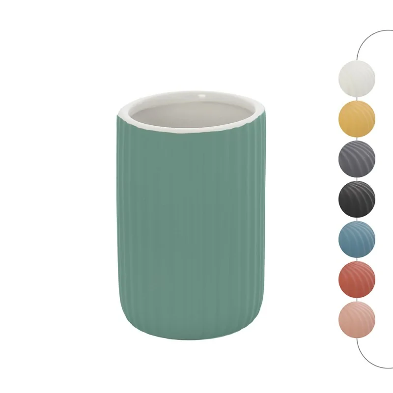 Bicchiere multiuso portaspazzolini con superficie cannettata, disponibile in set e in diverse colorazioni
