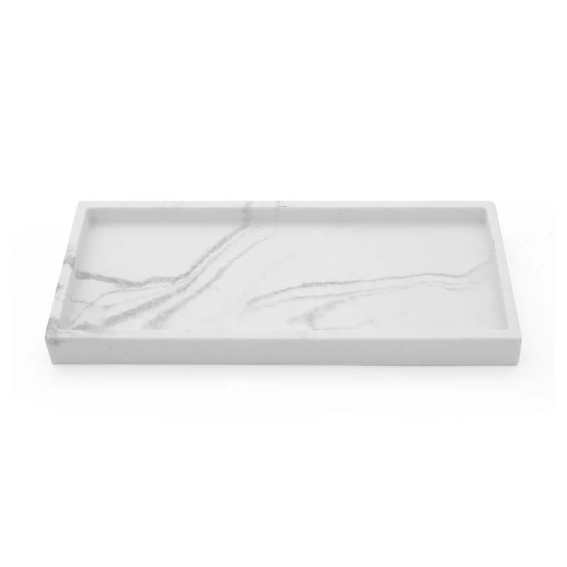 Vassoio porta oggetti da appoggio con superficie morbida dall’effetto marmo bianco della linea Marmo