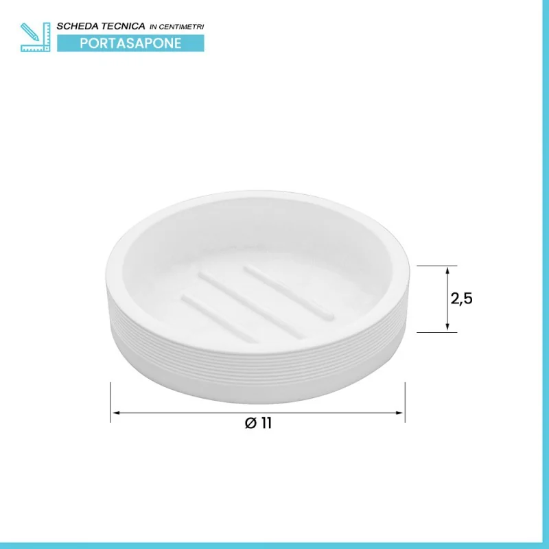 Porta saponetta solida in poliresina bianca Marica Scheda tecnica Porta saponetta solida in poliresina bianca Marica Porta sapone solido in poliresina bianca Marica Accessori bagno in poliresina bianca Marica