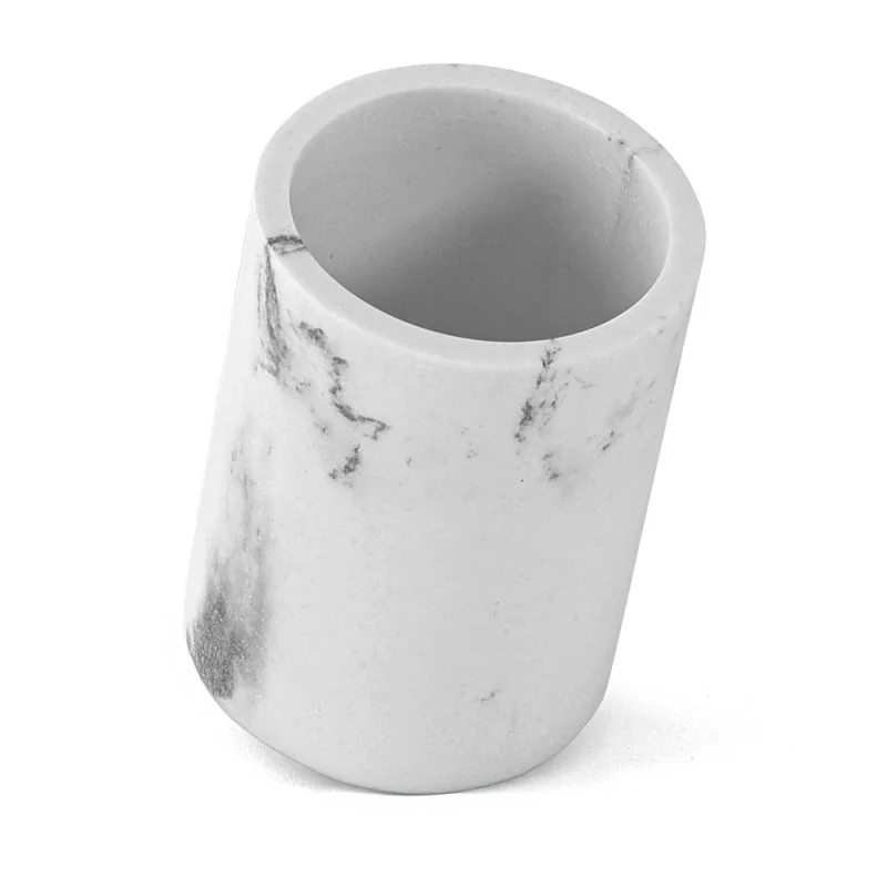 Bicchiere portaspazzolini in resina effetto marmo bianco Linea Ivy