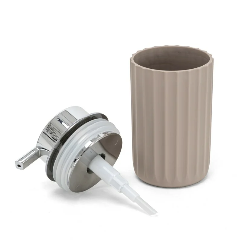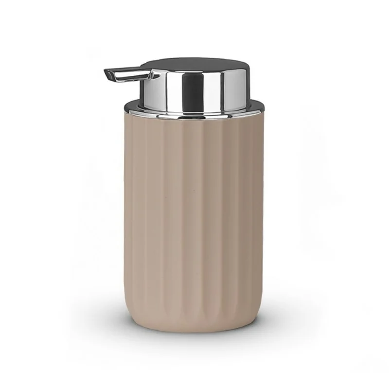 Il dispenser sapone tortora Gummy dona un tocco elegante e naturale al bagno. Realizzato in gomma termoplastica flessibile e antiurto, è morbido, resistente e perfetto per l’uso quotidiano. Il dosatore cromato completa il design con una nota raffinata e luminosa.