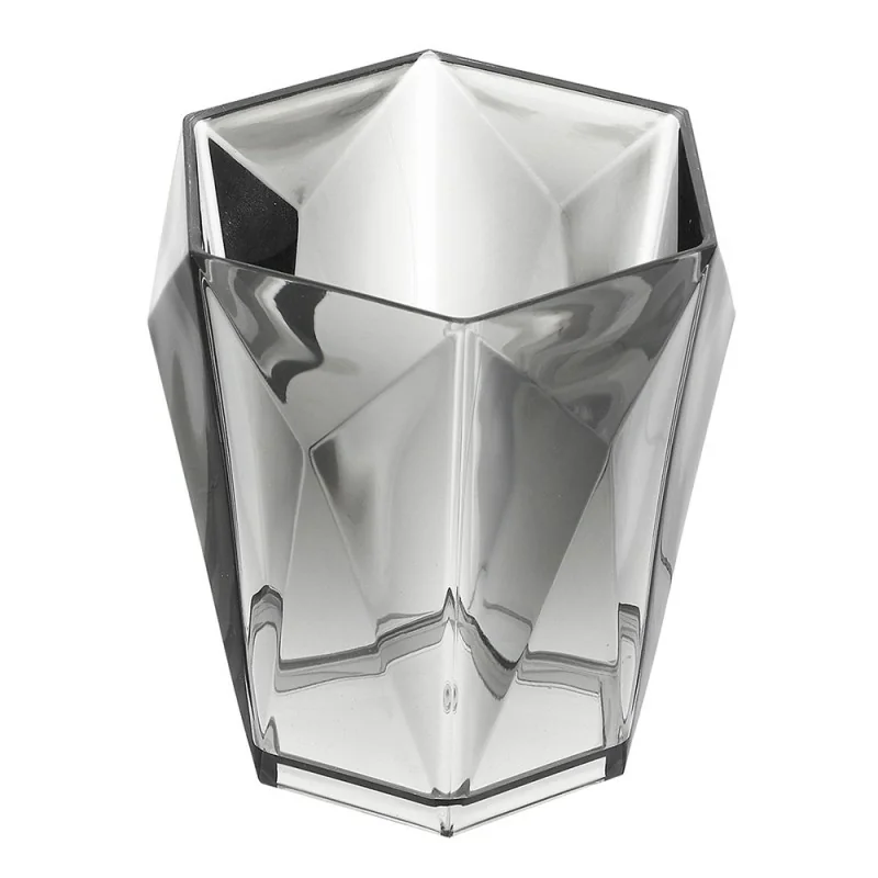 Questo portaspazzolino da appoggio presenta un design geometrico sfaccettato, coerente con la Linea Diamante. Realizzato in plastica ABS trasparente di colore grigio, offre una visuale interna. La forma poligonale crea un gioco di luci e ombre sulla superficie, aggiungendo un tocco di modernità al contesto bagno.