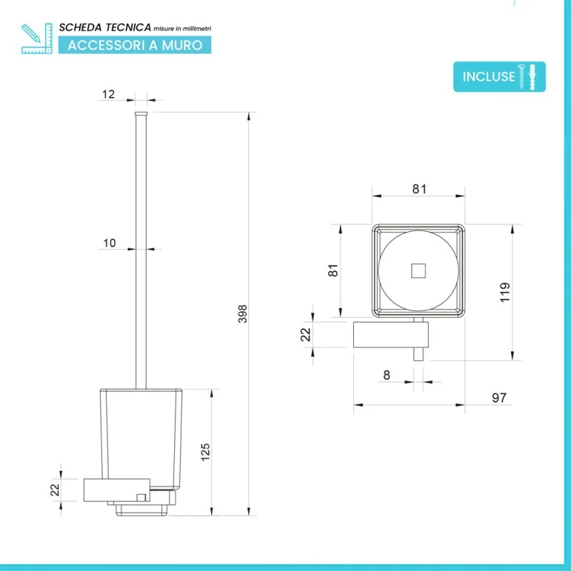 • INCLUDE viti, contenitore e scopino in setole nere;