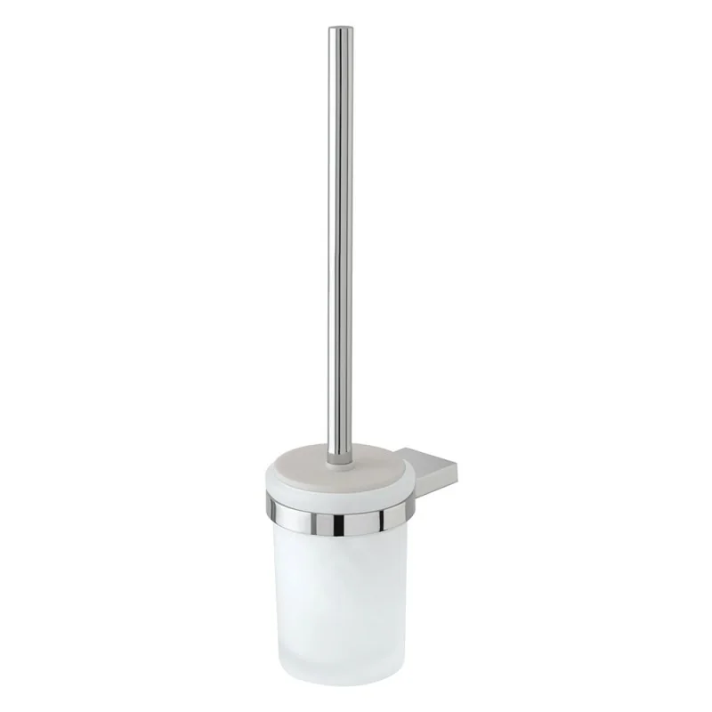 Portascopino da parete con contenitore in vetro satinato,spazzola in setole e supporto in acciaio cromato