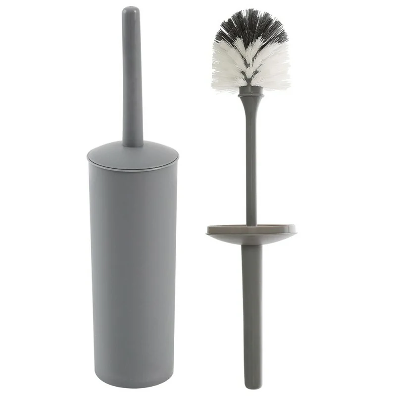 Portascopino wc da appoggio tondo grigio in plastica con scopino