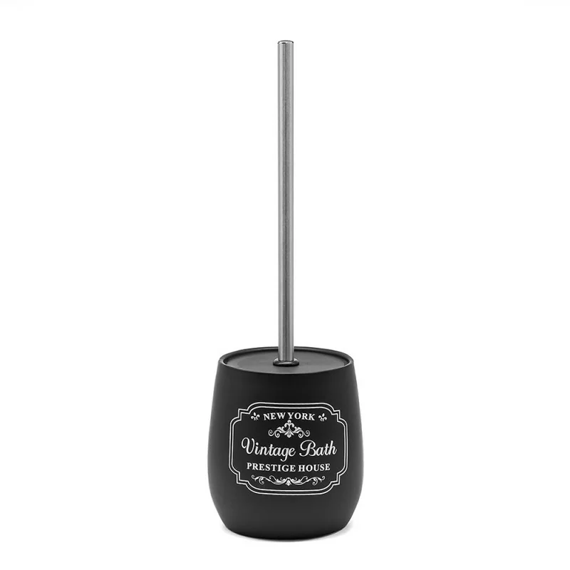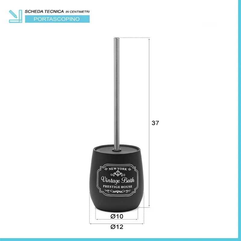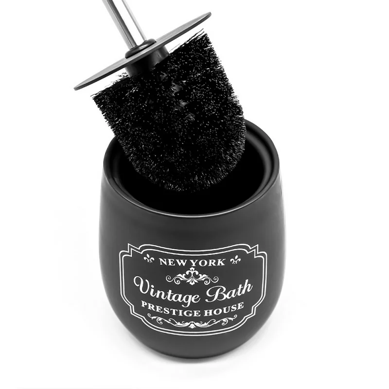 Porta scopino bagno in ceramica nera con stampe a contrasto bianche vintage Portascopino wc in ceramica nera con stampe a contrasto bianche vintage Scheda tecnica porta scopino bagno in ceramica nera con stampe a contrasto bianche vintage Porta scopino bagno in ceramica nera con scopettino wc con manico in acciaio cromo Porta scopino bagno in ceramica nera con spazzolone wc con setole nere morbide
