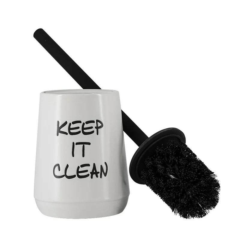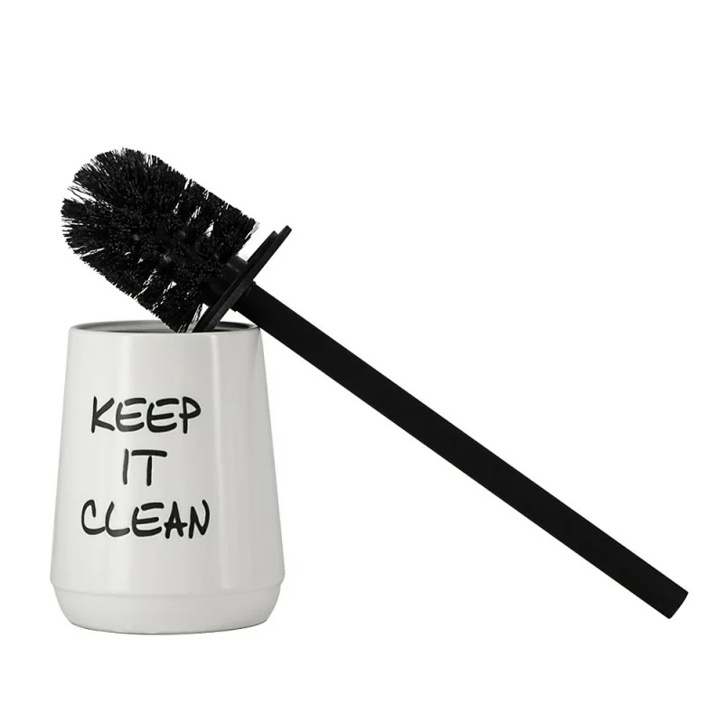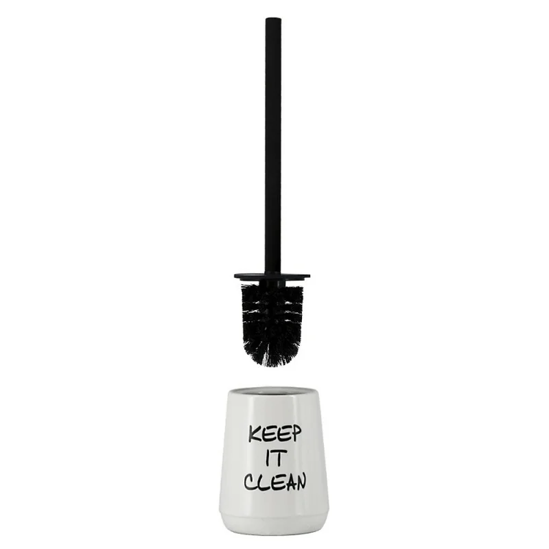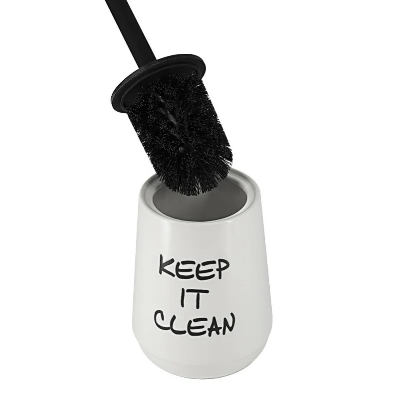 La ceramica è il materiale ideale per eccellenza per completare l’arredo bagno con accessori di qualità,semplici da pulire e durevoli nel tempo. Il portascopino bianco in appoggio ha una scritta stampata dal gusto vintage in contrasto con il colore nero. Le setole sono lunghe,per garantire una maggiore pulizia.