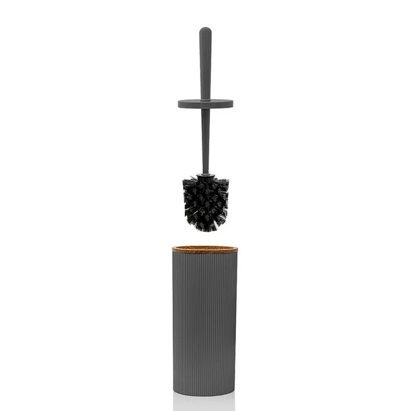 Portascopino WC Grigio in plastica con dettagli effetto legno serie Blob