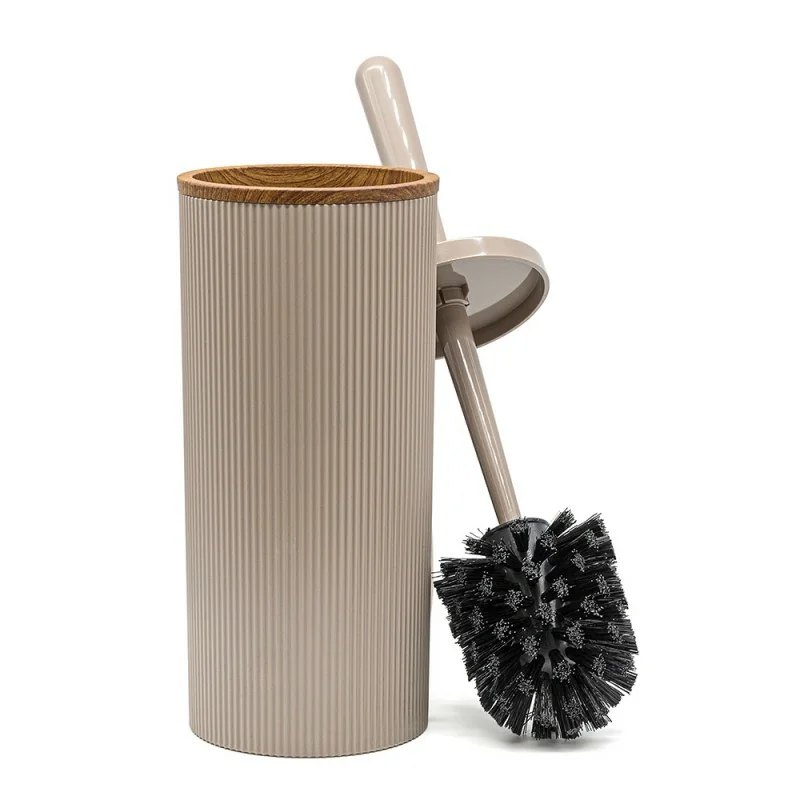 Portascopino WC Tortora in plastica con dettagli effetto legno serie Blob