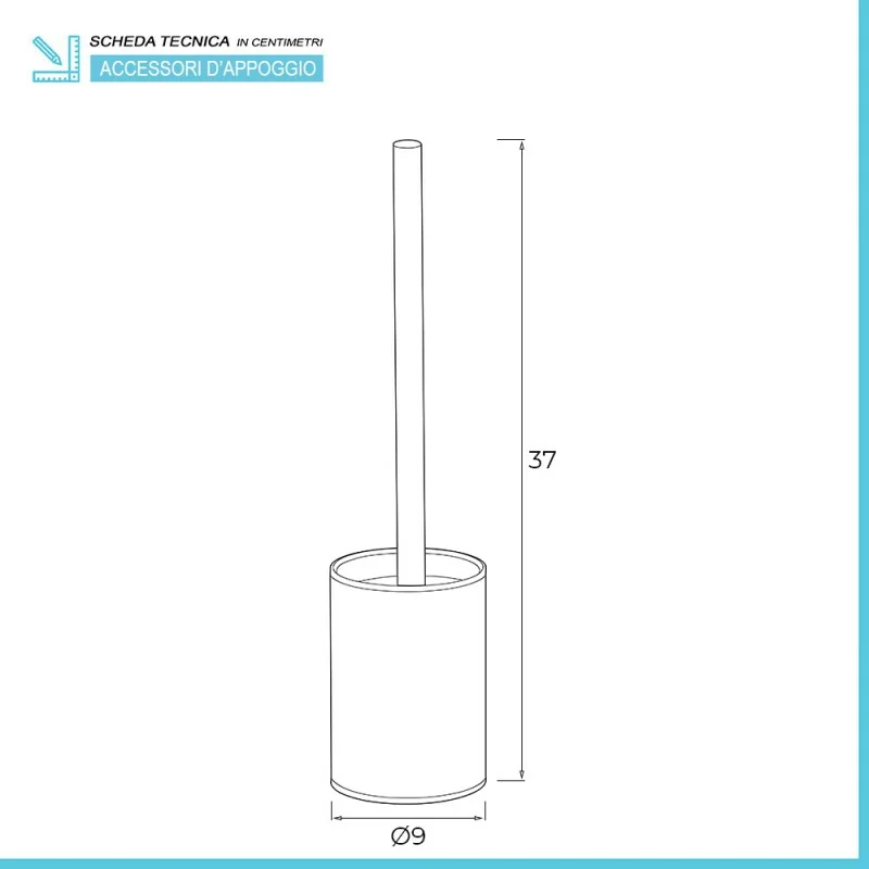 Il porta scopino wc dal design minimal con corpo basso,è realizzato in acciaio inox dalla finitura spazzolata. Il manico in tinta con la base è completo di scopino con setole nere remobili ed intercambiabili.