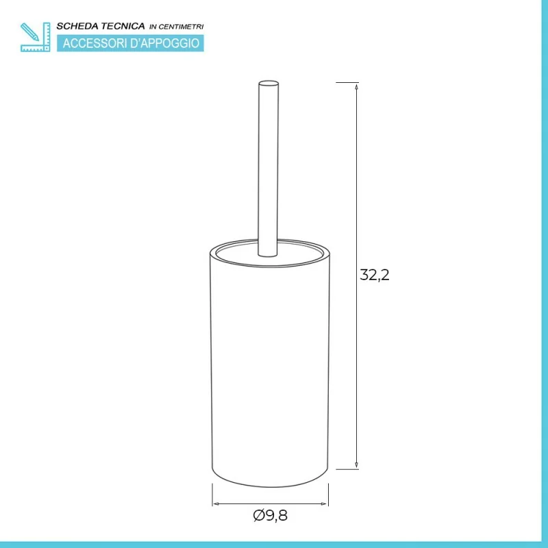 Il portascopino wv è un elemento che non può mancare nel tuo ambiente bagno. Realizzato in resina di alta qualità è completo di coperchio paraspruzzi in legno di bambù. Scopino con setole bianche e manico in acciaio inox finitura satinata.