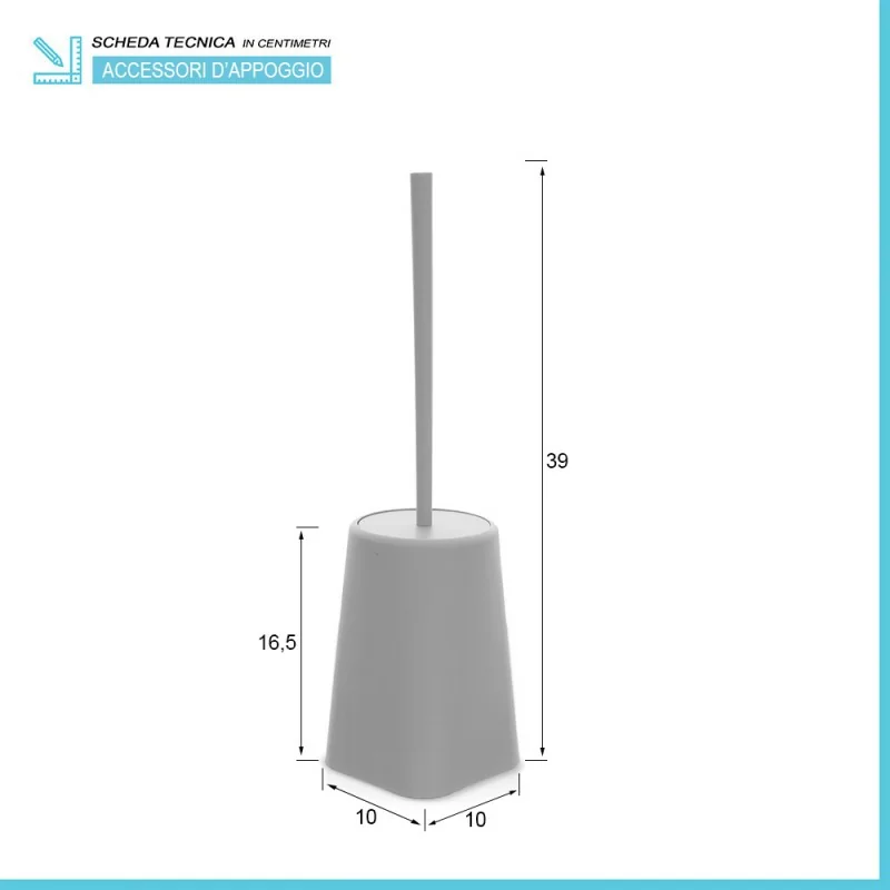Porta scopino bagno in abs colore grigio completo di scopino Linea Tender