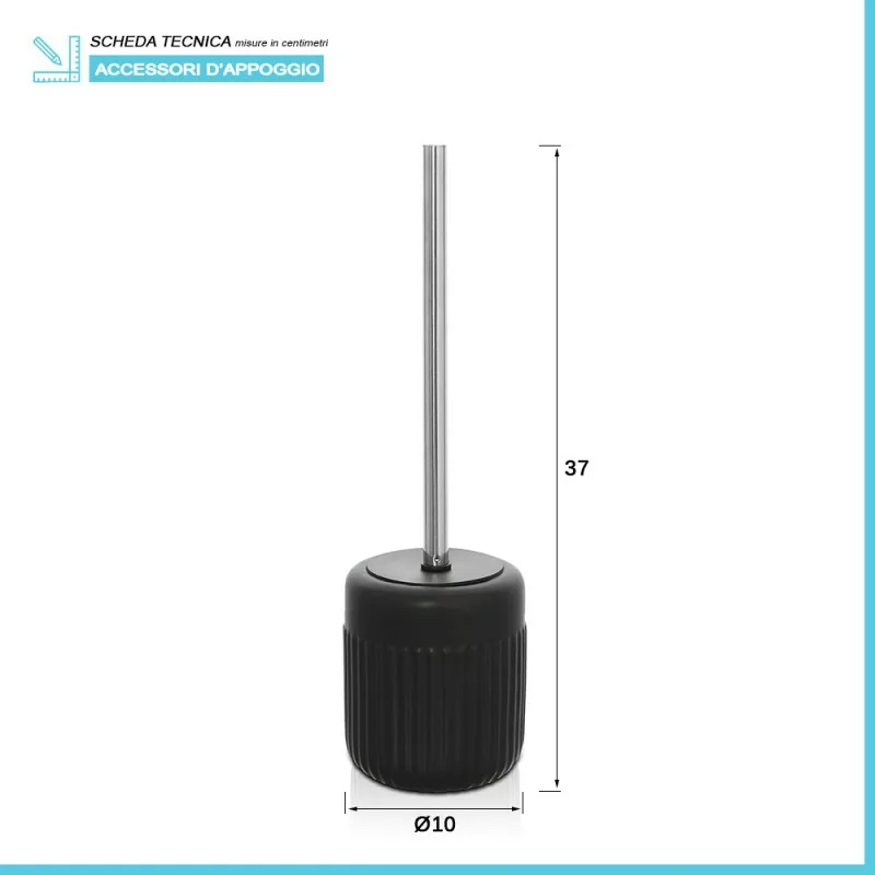 Scopino bagno – linea Cup in ceramica colore nero completo di portascopino