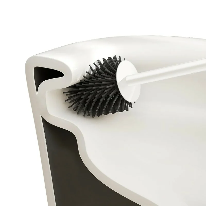 L’esclusivo design incontra la comodità per eccellenza:scopino con manico bianco in plastica e morbide setole grigie in silicone,resistente e privo di lanugine,in grado di igienizzare a fondo senza graffiare il wc,per una rinfrescante esperienza di pulizia.