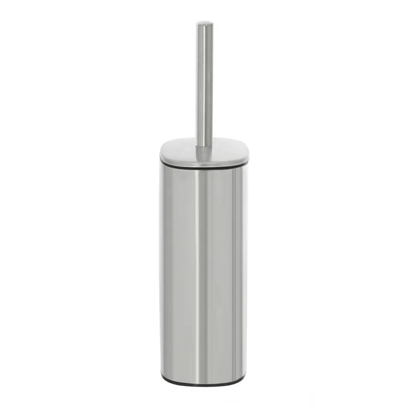 Scopino in acciaio spazzolato con secchio nero removibile,paraspruzzi e setole nere