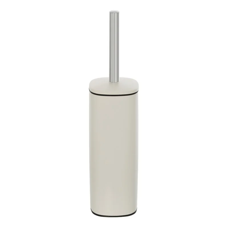 Portascopino bianco opaco con setole nere e contenitore estraibile