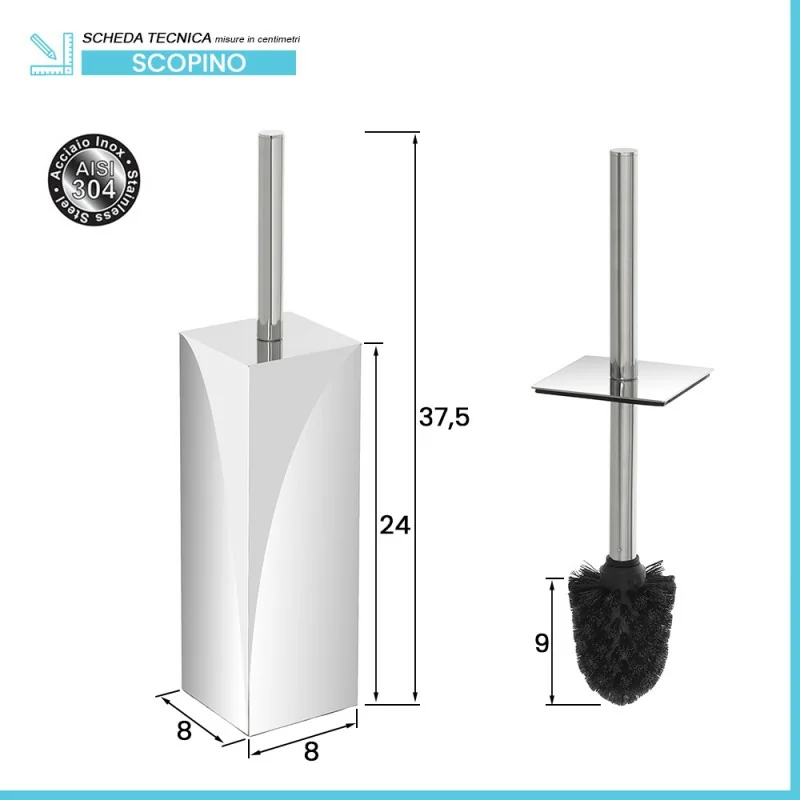 L’alternativa igienica e innovativa allo scopino tradizionale è il nuovo portascopino con morbide setole nere resistenti,progettate per pulire a fondo senza deformarsi,e contenitore in acciaio inox 304,sinonimo di qualità e durata nel tempo.
