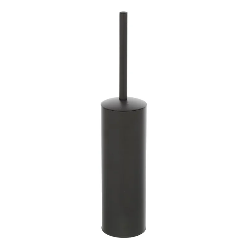 Portascopino grigio opaco con setole nere in silicone e secchio interno