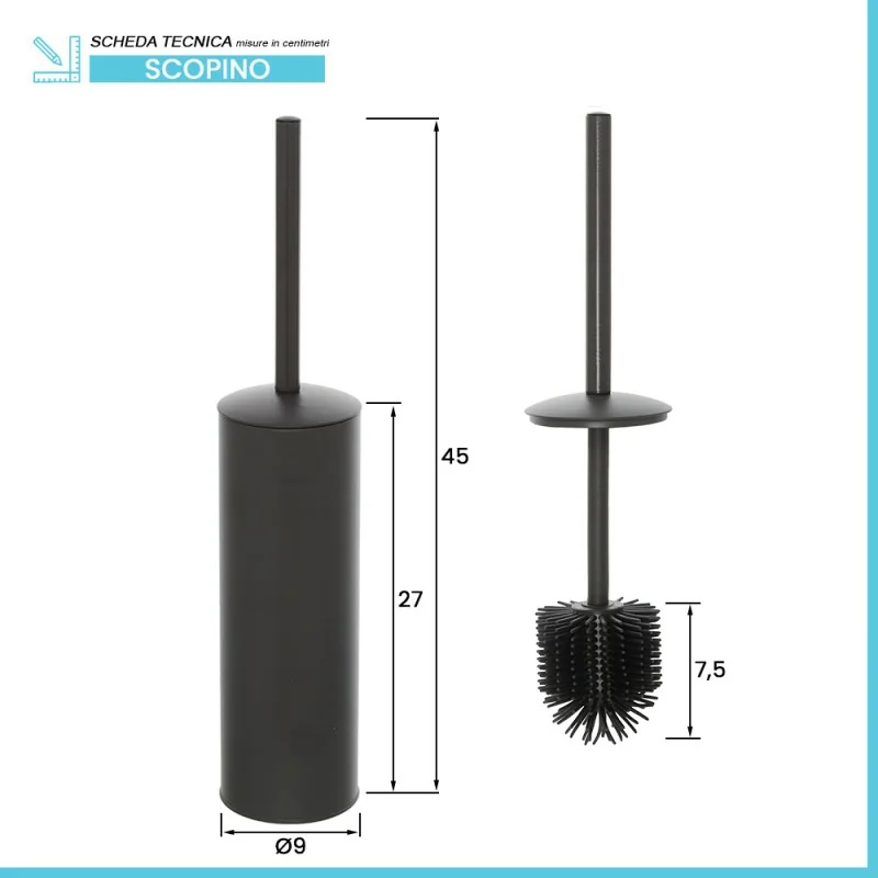 Scopino in acciaio opaco con setole nere flessibili e antigraffio,manico con paraspruzzi
