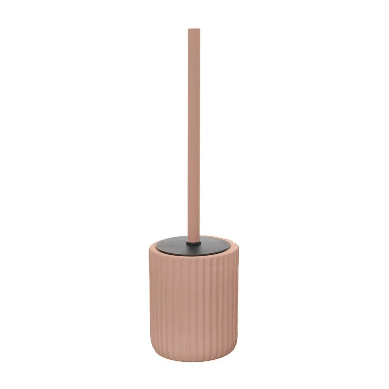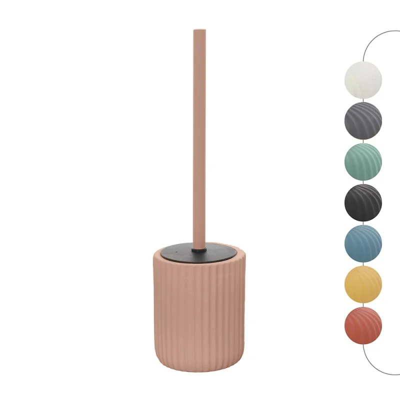 Scopino wc rosa in ceramica soft touch con setole nere Spring