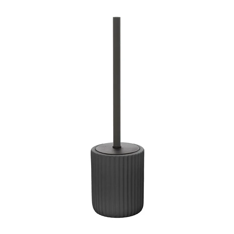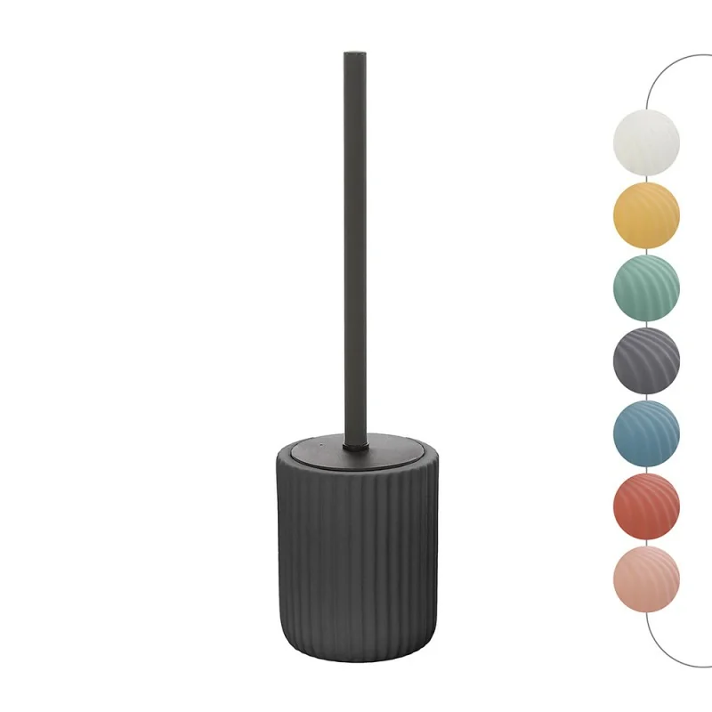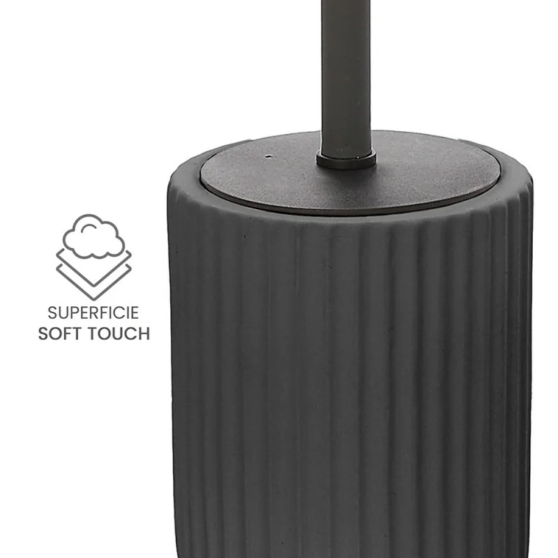Portascopino bagno da appoggio con superficie cannettata, setole nere anti-igieniche con paraspruzzi