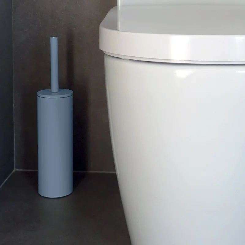 Portascopino in acciaio d’appoggio azzurro polvere con recipiente interno estraibile e scopino in setole nere removibile Axin