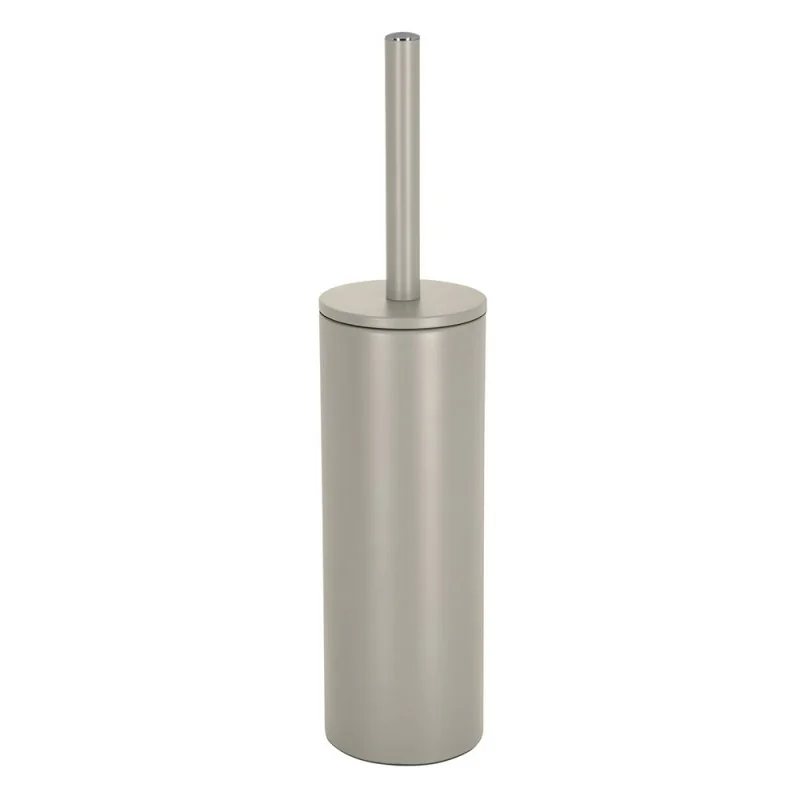 Portascopino in acciaio d’appoggio tortora opaco con recipiente interno estraibile e scopino in setole nere removibile Axin