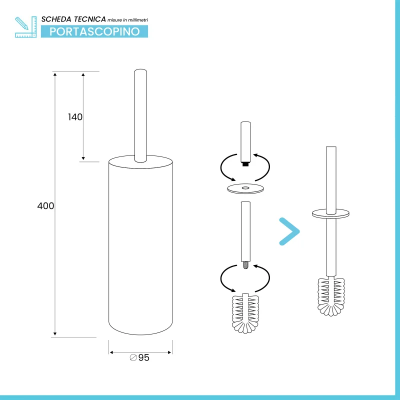 • Completo di scopino e porta scopino;