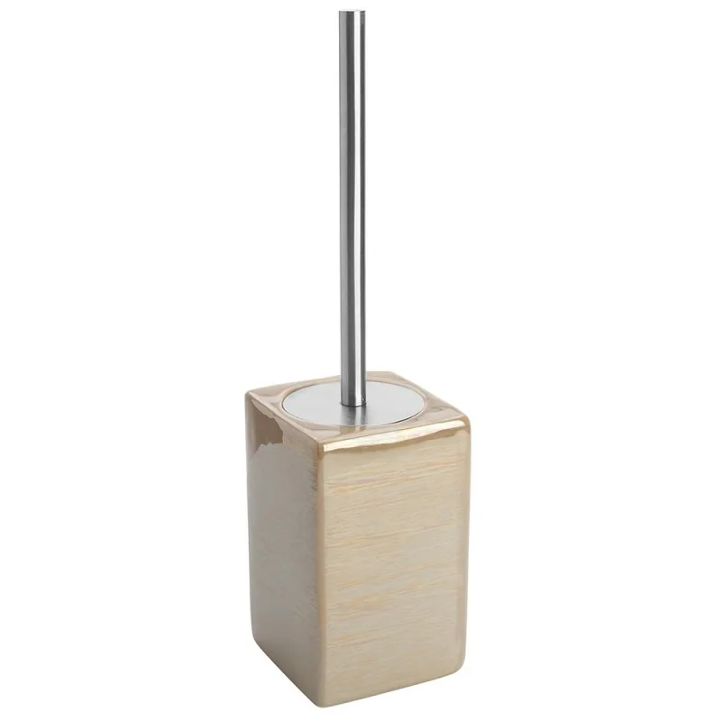 Portascopino WC Beige in Ceramica e Manico Acciaio Inox Cuba