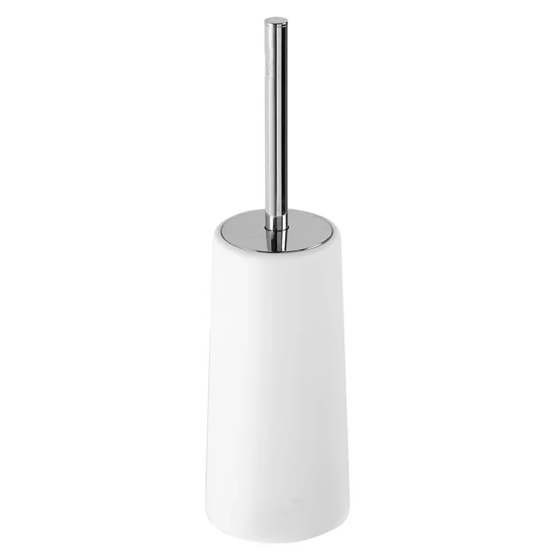 Porta scopino water d’appoggio con design tondo, setole morbide e manico ergonomico
