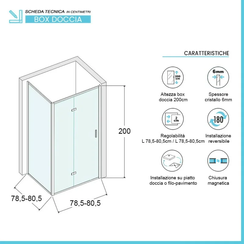 Box doccia 80x80 cm a soffietto caratteristiche tecniche: