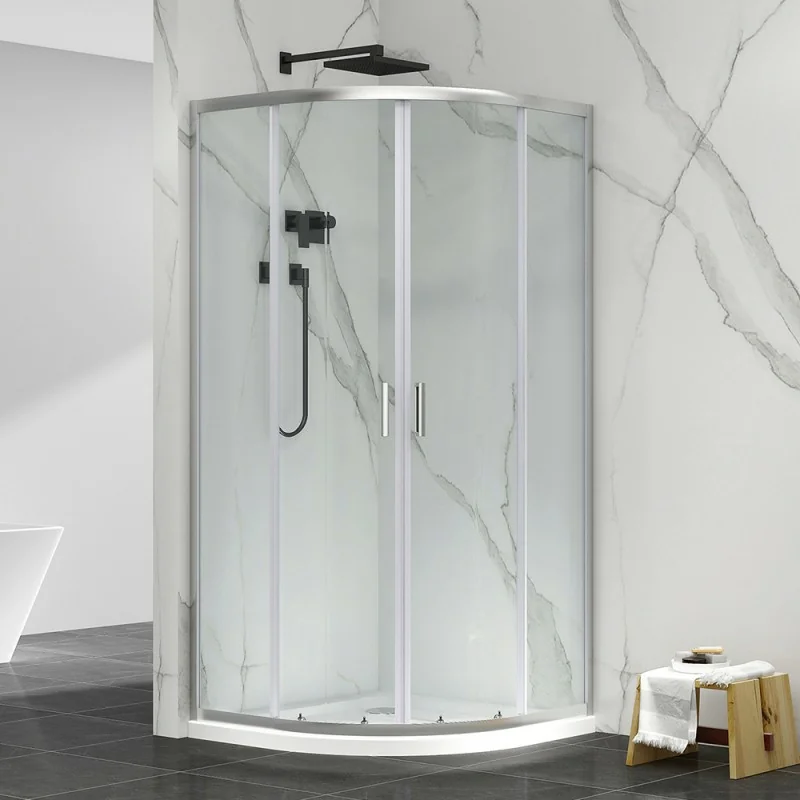 • Doppio scorrevole semicircolare con maniglia in abs cromato;