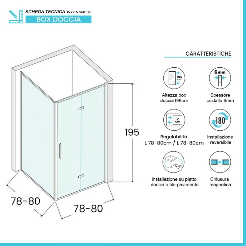• Dimensioni: L 80 x P 80 x H 195 cm;