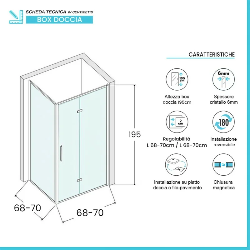 Box doccia angolare 70x70 – caratteristiche tecniche: