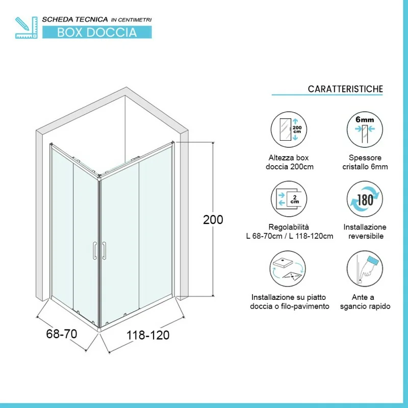 Box doccia angolare 70x120 cm doppio scorrevole in cristallo trasparente Ted